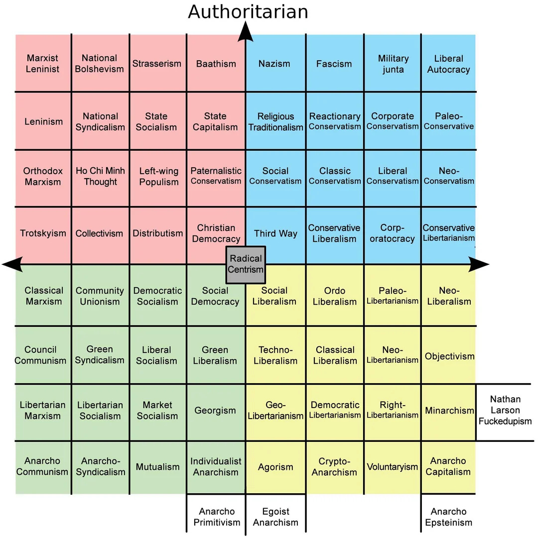 Adding a second axis (Authoritarian-Libertarian) adds even more variance: